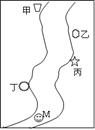⑵ 在丁的下游M处取出的河水中,肯定含有的离
