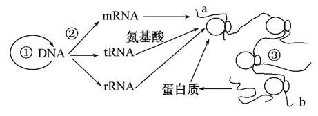 (3)若a、b为mRNA的两端,核糖体在mRNA上的移动方向是 。一个mRNA上连接多个核糖体叫做多聚核糖体,多聚核糖体形成的生物学意义是 。