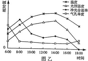 (2)图乙表示初夏某天在遮光50%条件下,温度、光照强度、该植物净光合速率和气孔导度(气孔张开的程度)的日变化趋势。8:00到12:00光照强度增强而净光合速率降低,主要原因是___________。