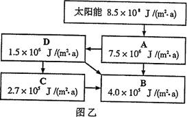 (3)图乙表示某海域能量流动简图,A、B、C、D表示生态系统的组成成分。图中________和_________(填字母)在碳循环过程中起着关键作用;能量在第一营养级和第二营养级之间的传递效率为___________。