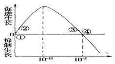 学用如图四个点标注的浓度中的①和A两种浓度(A>①)的生长素