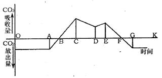 (1)白天指O→K中哪—段时间 ,其中有机物积累最多的时刻是在 。