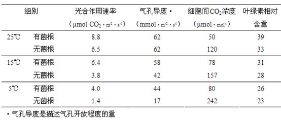 (2)15℃条件下,与无菌根玉米相比,有菌根玉米光合作用速率高,据表分析,其原