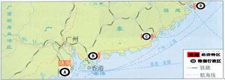 12、从1980年开始,我国陆续设置了一些“特区”。右图的四个“特区”中,与其他三个性质明显不同的是