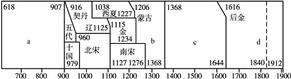 2.(2011·山东德州)下图是中国历史纪年表(局部)(a、b、c、d代指4个朝代),下列说法正确的是( )。