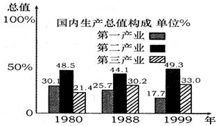 39.下图为中国产业结构变化图。该时期产业结构变化的原因有 ( )