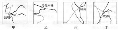 D.丁区域位于四川盆地