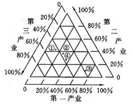 图5表示①、②、③、④四个地区三大产业的就业构成,读图回答20—21题