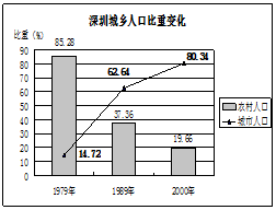 从1979年至2000年,深圳的人口数量在不断增加。根据“深圳城乡人口比重变化
