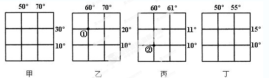 读下面四幅经纬网示意图,完成小题。