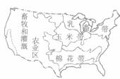 13.农业地区专门化是指每个地区根据自然条件和经济条件重点发展一种或几种农产品的专门化生产。结合美国本土农业带分布图判断,美国五大湖附近地区分布的农业带是 ( )