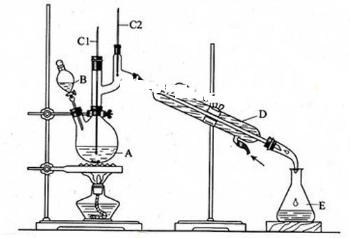 将6.0gNa2Cr2O7放入100mL烧杯中,加30mL水溶解,再缓慢加入5mL浓硫酸,将所得溶液小心转移至B中。在A中加入4.0g正丁醇和几粒沸石,加热。当有蒸汽出现时,开始滴加B中溶液。滴加过程中保持反应温度为90~95°C,在E中收集90。C以下的馏分。