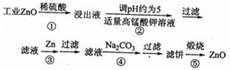 氧化锌为白色粉末,可用于湿疹、癣等皮肤病的治疗。纯化工业级氧化锌(含有Fe(Ⅱ), Mn(Ⅱ), Ni(Ⅱ)等杂质)的流程如下: