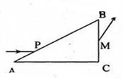 (2)(10分)如图,三棱镜的横截面为直角三角形ABC,∠A=30°,∠B=30°。一束平行于AC边的光线自AB边的p点摄入三棱镜,在AC边发生反射后从BC边的M点射出,若光线在P店的入射角和在M店的折射角相等