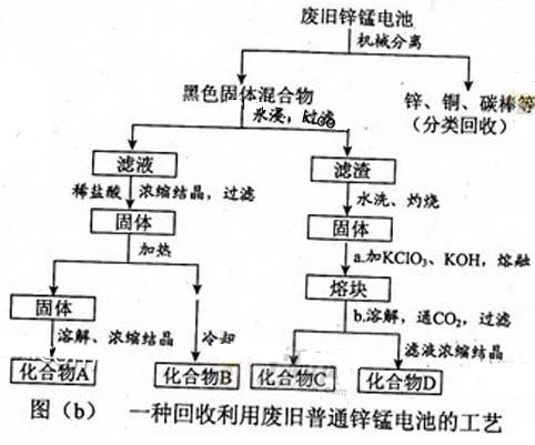 (2) 图(b)表示回收利用废旧普通锌锰电池的一种工艺(不考虑废旧电池中实际存在的少量其他金属)。