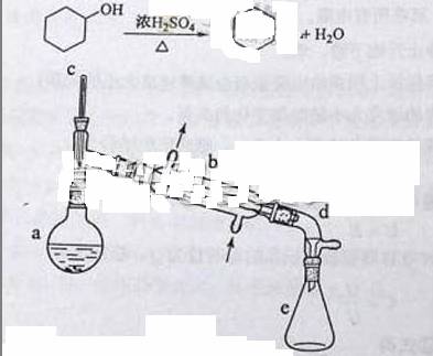 在a中加入20g环乙醇和2小片碎瓷片,冷却搅动下慢慢加入1mL浓硫酸,b中通入冷却水后,开始缓慢加热a,控制馏出物的温度不超过90℃。
