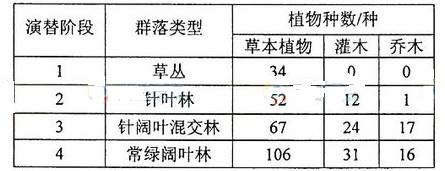 阔叶林逐步得以恢复。下表为恢复过程中依次更替的群落类型及其植物组成。