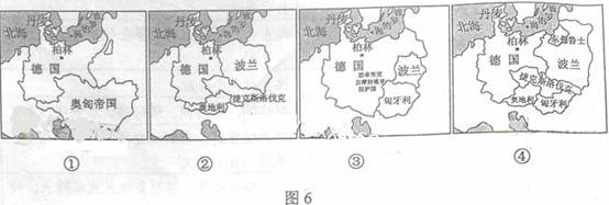 34.图6中①②③④分别是不同时期的欧洲局部图。符合德国历史发展进程的是