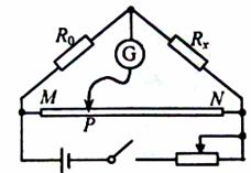 是灵敏度很高的电流表,MN是一段均匀的电阻丝。闭合开关,改变滑动头P的位置,当通过电流表