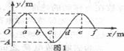 图1是一列简谐横波在t=1.25s时的波形图,已知c位置的质点比a位置的晚0.5s起振,则图2所示振动图像对应的质点可能位于