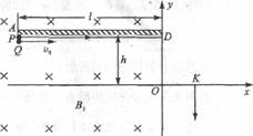 如下图所示,竖直平面(纸面)内有直角坐标系xOy,x轴沿水平方向。在x≤O的区域内存在方向垂直于纸面向里,磁感应强度大小为B1的匀强磁场。在第二象限紧贴y轴固定放置长为l、表面粗糙的不带电绝缘平板,平板平行于x轴且与x轴相距h。在第一象限内的某区域存在方向相互垂直的匀强磁场(磁感应强度大小为B2、方向垂直于纸面向外)和匀强电场(图中未画出)。一质量为m、不带电的小球Q从平板下侧A点沿x轴正向抛出;另一质量也为m、带电量为q的小球P从A点紧贴平板沿x轴正向运动,变为匀速运动后从y轴上的D点进入电磁场区域做匀速圆周运动,经