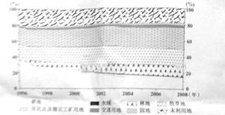 材料一:1996-2008年西宁市土地利用类型结构变化图(图9)
