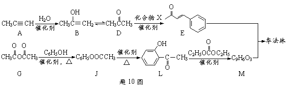10.(15分)华法林是一种治疗心脑血管疾病的药物,可由化合物E和M在一定条件下合成得到(部分反应条件略)。