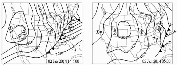 ①偏南风转西北风 ②天气晴朗 ③风力减弱 ④气温降低