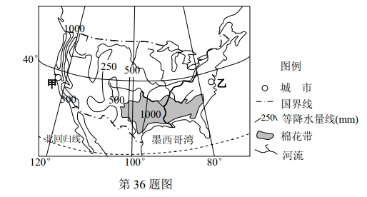 (1)我国新疆棉花产区和美国棉花带相比,两者相似的自然条件是 、