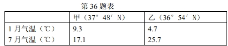 (3)据表比较甲、乙两城市的气温差异,并解释其原因。(10分)