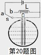 为了测量储罐中不导电液体的高度,将与储罐外壳绝缘的两块平行金属板构成的电容器C置于储罐中,电容器可通过开关S与线圈L或电源相连,如图所示。当开关从a拨到b时,由L与C构成的回路中产生的周期