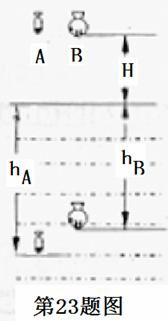 (16分)为了研究鱼所受水的阻力与其形状的关系,小明同学用石蜡做成两条质量均为m、形状不同的“A鱼”和“B鱼”,如图所示。在高出水面H处分别静止释放“A鱼”和“B鱼”,“A鱼”竖直下潜