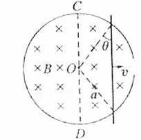 的导体直杆,单位长度电阻均为R0。圆环水平固定放置,整个内部区域分布着竖直向下的匀强磁场,磁感应强度为B。杆在圆环上以速度