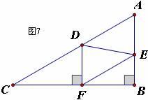 22、本题满分10分。如图7,在Rt⊿ABC中,∠B=90°,AC=60,AB=30。点D是AC上的动点,过D作DF⊥BC于F,再过F作FE//AC,交AB于E。设CD=x,DF=y。