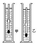 22、如图示:将同一支密度计先后放入甲、乙两种液体中。则两种情况下密度计所受的浮力大小关系为F甲 F乙(<、=、>),两液体的密度关系为ρ甲 ρ乙(<、=、>)。