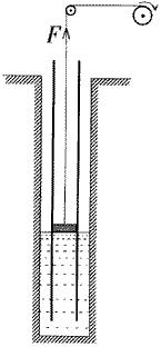井中固定地插着一根两端开口的薄壁圆管,管和井共轴,管下端未触及井底,在圆管内有一不漏气的活塞,它可沿圆管上下滑动.开始时,管内外水面相齐,且活塞恰好接触水面,如图所示,现有卷场机通过绳子对活塞施加一个向上的力F,使活塞缓慢向上移动.已知管筒半径r=0.100m,井的半径R=2r,水的密度