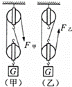 分别用如图所示的(甲)、(乙)两个滑轮组,在100s内将重为400N的物体G匀速提升10m,每个滑轮的重均为20N.不计绳重及摩擦,此过程中( )