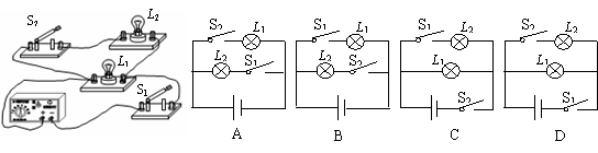 12.在图所示的几种电路中,电流表只测L2电流的是( )