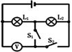 如图所示,当开关S1断开,S2闭合时,电压表读数为4.5V,当开关S1闭合,S2断开时,电压表读数为2.1V,则小灯泡L1、L2两端的电压分别为( )