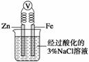 C.如右图,一段时间后给烧杯内的溶液中加入黄色的K3[Fe(CN)6]溶液,可看到Fe电极附近有蓝色沉淀生成