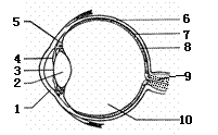 结合右图人眼球结构示意图,指出下列描述中错误的是( )。