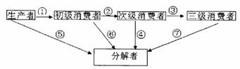 37.下图所示生态系统中能量流动图解部分示意图,①②③④⑤⑥⑦各代表一定的能量值,下列各项不正确的是