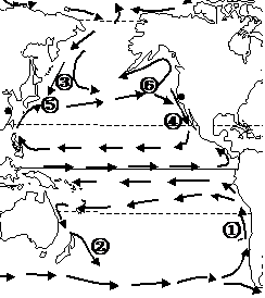 下为太平洋洋流分布示意图,读图回答17~题