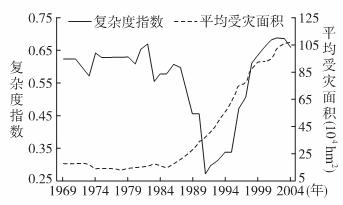 A平均受灾面积持续增加,复杂度指数趋于减小