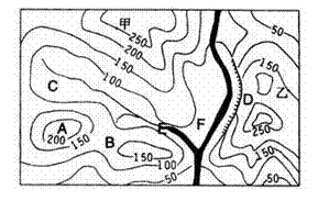 2、?某地等高线地形图(图2),回答?span lang=EN-US>1--3题?span lang=EN-US>