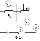 22. 如图14所示电路,电源电压为18伏,且保持不变。R1=30欧,滑动变阻器R2上标有“50Ω 2A”字样。闭合电键S,滑片P位于某位置时,电流表示数为0.4安。求: