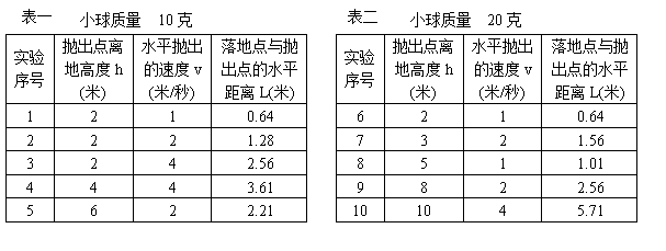 为了验证以上猜想,他们从实验室借来能控制速度的弹射器、不同的小钢球、刻度尺等实验器材,按照如图18所示的实验方法进行实验探究,得到数据记录在表一和表二中。