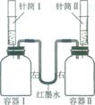 如下图所示进行实验,实验开始前红墨水左右两端液面保持相平。容器I、II体积相同,装置气密性良好。实验时同时将针筒内溶质质量分数相同且足量盐酸全部迅速注入容器中,实验操作如下: