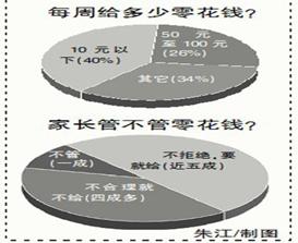 以下两幅图是关于学生零花钱的问题。请你写一篇英语短文,谈谈你的理解。
