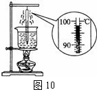 17.如图10所示,在“观察水沸腾”的实验中,水在沸腾时,温度计示数如图所示,此时水的沸点为 ;若继续加热3min,温度计的示数 。